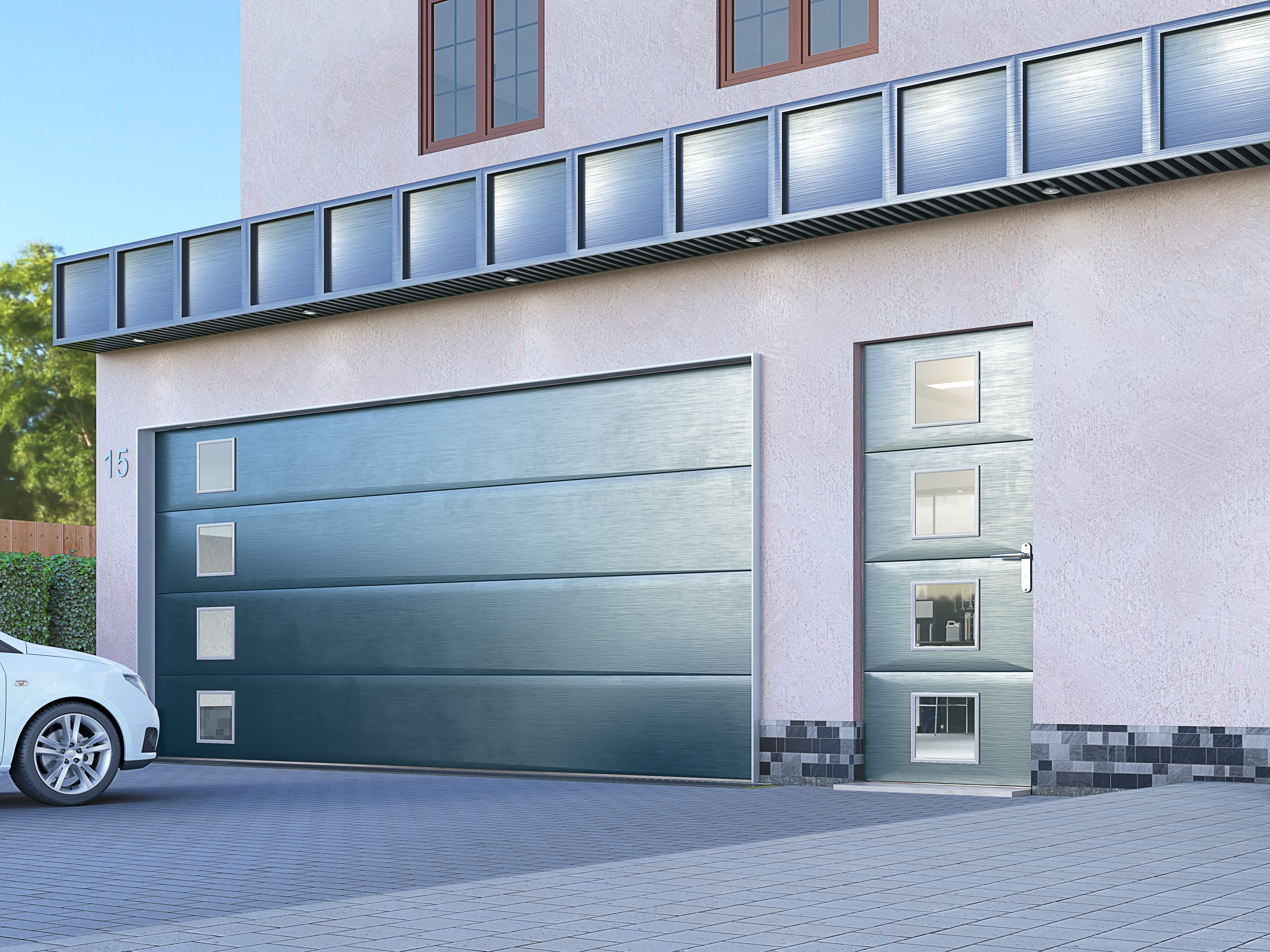 Die Garagen Nebentür können wir optisch dem Garagentor anpassen. Auch wenn dieses über Fenster und andere Designelemente verfügt.